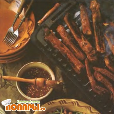 Вынуть ребрышки из фольги и обмазать оставшимся в фольге соком. Готовить в гриле еще 15 минут, периодически переворачивая, пока они не станут мягкими и не покроются золотистой корочкой.