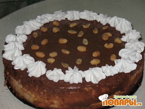 Взбить желтки с сахаром и творогом, добавить сметану, шоколад и желатин. В конце вмешать взбитые в пену белки.