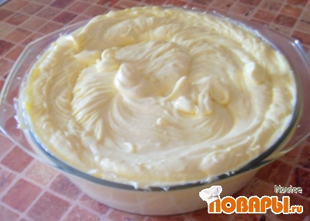Взбиваем масло,постепенно добавляя (по 1 ст.л. заваренный крем+ванильный сахар).