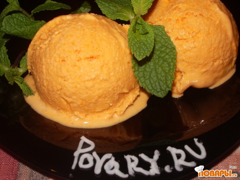 Готовое мороженое вы кладываем на тарелку и украшаем листиками мяты.