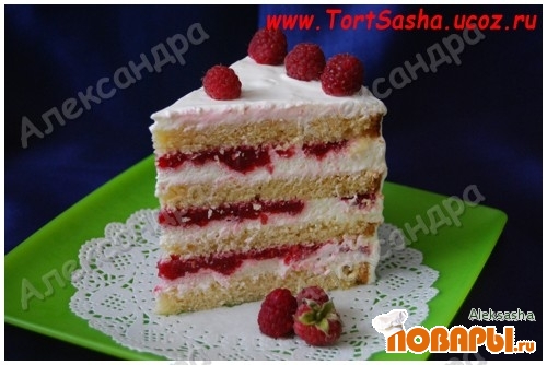 Желатин развести в небольшом кол.воды и дать набухнуть 5-7мин. Малину с сахаром растереть в боендере. Желатин нагреть до полного растворения (но не кипятить) и влить в малину, хорошенько перемешать. Поставить в холодильник до полного застывания. Далее порезать на кусочки и выкладывать на крем. (см.фото) Я обычно делаю это вилкой.
