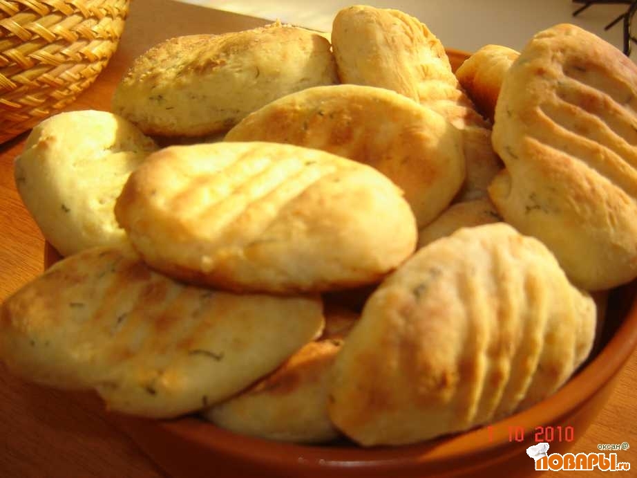 Скатать длинную колбасу, от нее отрезать кусочки толщиной 1,5-2 см, раскатать в ладонях небольние колбаски и выкладывать на смазанный растительным маслом противень. Сверху прижать вилкой (имитируя рисунок настоящего батона).