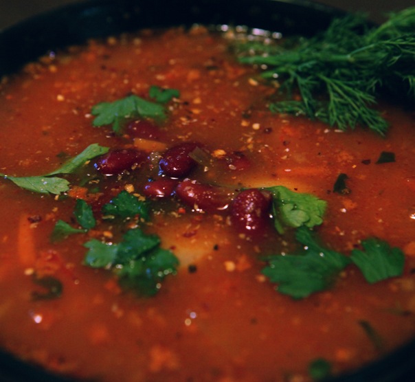 Мексиканский острый томатный суп с фасолью