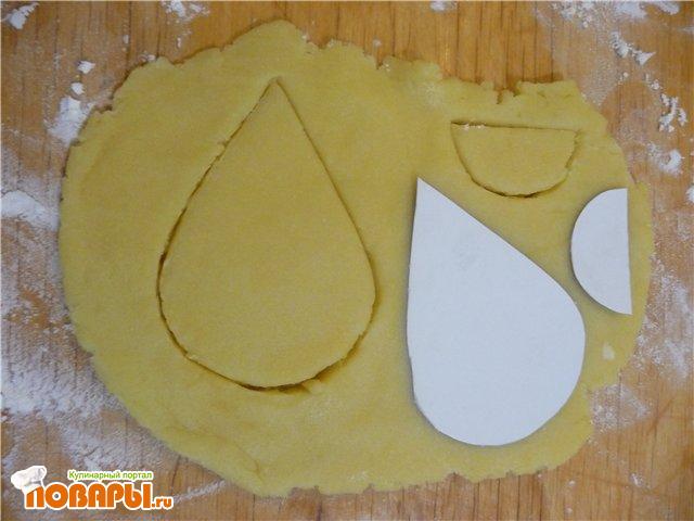 Из муки, желтка и маргарина замешиваем песочное тесто. Дадим ему полежать в холодильнике минут 30.