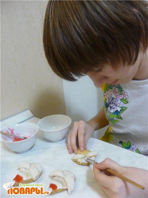 Готовые заготовки - на противень, застеленный пергаментной бумагой, выпекать в духовке при 180 гр. до готовности (минут 20).