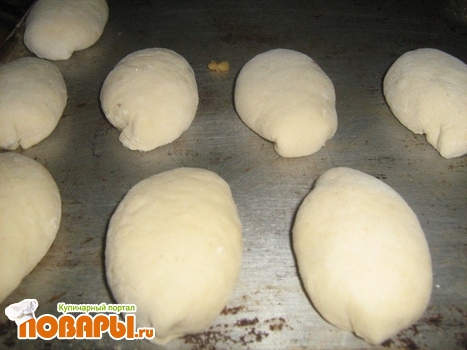 Можно и швом вверх, тогда, как бы, гребешок на пирожке получается. Выпекать в духовке 15-20 минут при 200-220 град (на двоечке). Можно обжарить пирожки в жире.