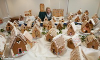 Для создания шедевра потребовалось 66 фунтов сладкого льда, 9 фунтов шоколадных кнопок, и почти 100 фунтов пряников. Сладкий лед использовался вместо цемента – им скреплялись стены зданий, мосты. 120 часов ушло на то, чтобы испечь пряники, собрать и украсить все здания этой прекрасной исторической деревеньки.