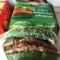 И, наконец, 23 сентября текущего года Burger King в Саудовской Аравии, предложили своим клиентам зеленые бургеры. Выпуск нового блюда был приурочен к празднованию 83-й годовщины основания королевства. Зелеными в новом бургере будут булочки, салат и огурцы. Прочие составляющие остались в своем первоначальном цвете.