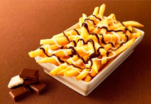 Сложно представить, но речь идет о традиционной картошке фри, политой шоколадным соусом.