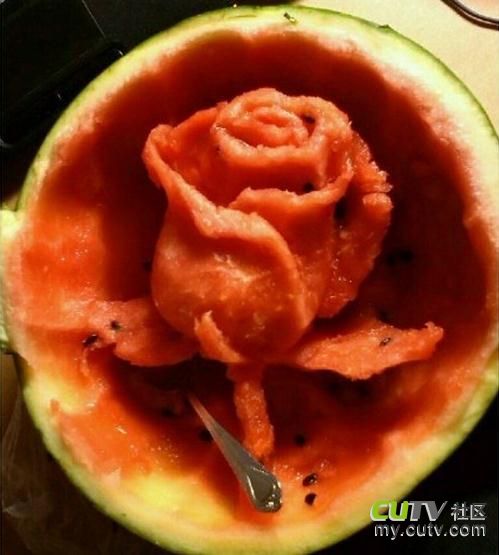 Есть много талантливых художников, которые сложную резьбу в мякоти арбуза превратили в произведения искусства (есть такое направление – карвинг), но большинство из них используют специальные инструменты, чтобы вырезать жесткую оболочку плода, в то время как Цянь Вэй Чэн пользуется только ложкой и ножом для работы с красной мякотью арбуза.