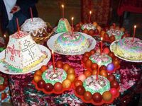 Главным символом праздника были и остаются по сей день куличи. Издревле их пекли таких размеров, чтобы каждому члену семьи досталось по кусочку на каждый день пасхальной недели. Кроме того, считалось, что чем больше объем теста, тем лучше оно выбраживается.