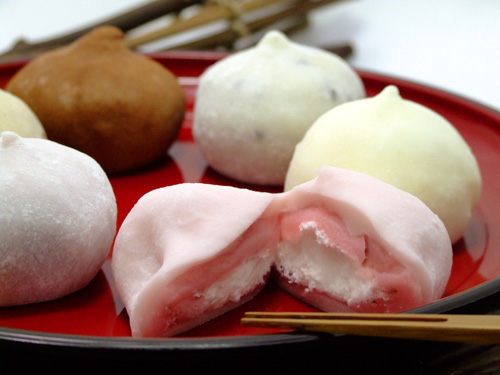 Mochi ice cream – мороженое моти – это лакомство из моти-кейка (или лепешки моти) и традиционного мороженного. Кусочки последнего «упаковывают» в довольно тонкий слой из сладкой рисовой пасты и кукурузного крахмала. Существует множество разновидностей сортов мороженого-моти. Особой популярностью пользуется моти со вкусом зеленого чая, шоколада, ванили, бобовой пасты азуки и клубники.
