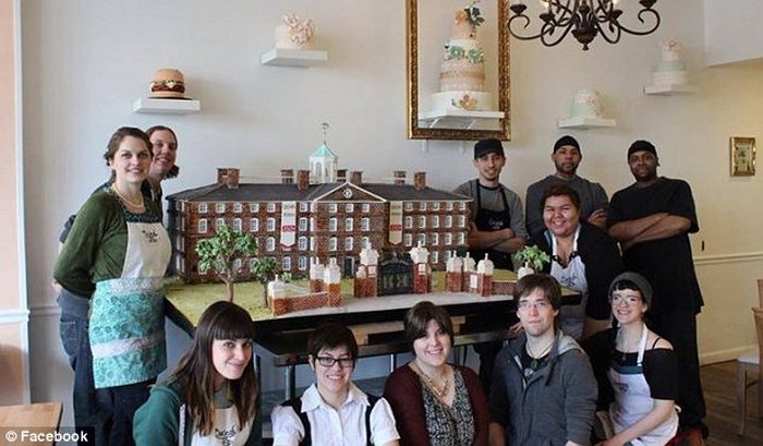 «Это точная 3%-ная копия здания, – рассказывает Тайлер Оклиф, владелец кондитерской. – Мы произвели замеры университета, масштабировали и начали собирать его по частям».