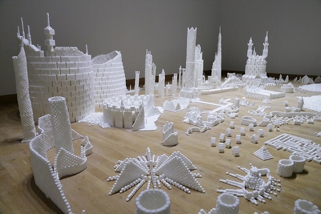 Что бы вы сделали с полумиллионом кубиков сахара? Если вы художники Брендан Джемисон или Марк Ревелс, ответ прост: вы пригласите 5000 человек, и построите футуристический мегаполис из них. Эти 2 художника приехали в Америку в мае и создали интерактивную, открытую выставку Sugar Hill районе Гарлема в Нью-Йорке.