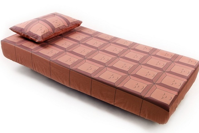 На этот раз компания предлагает превратить свою кровать в огромных размеров шоколадную плитку! Постельное белье, созданное дизайнером и руководителем проекта Софи Фаркуар (Sophie Farquhar), Chocolate Bar Bed, состоит из 4-ех частей: двухслойная простыня и наволочка в виде шоколадного батончика, и одеяло в виде упаковки от плитки шоколада.
