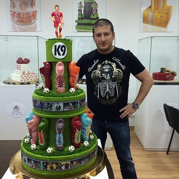 Оказывается, все больше ведущих игроков РФПЛ желают видеть на своем праздничном столе огромный эксклюзивный торт от кондитера-виртуоза Рената Азгамова. Как рассказывает шоколадных дел мастер, торты на футбольную тематику он и его команда делают уже более трех лет и в достаточно большом количестве.