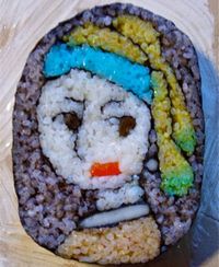 Токийская художница Такайо Кийота использует рулоны суши в качестве холста для своего искусства. Верьте или нет, но она никогда не знает точно, как ее съедобные художественные произведения будут выглядеть, полагаясь только на интуицию и представление при размещении мастерски окрашенных зерен риса внутри рулона.