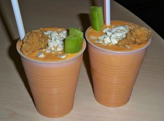 И последний коктейль, завершающий наш странный ТОП, молочный коктейль с куриными крылышками, поджаренными в фритюре, и ломтиком сельдерея.