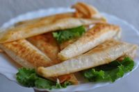 • 1 упаковку крабовых палочек измельчить. Добавить зелень петрушки и укропа, чеснок и майонез по вкусу. Начинка не должна быть жидкой. Добавить 100 г тертого сыра и перемешать.