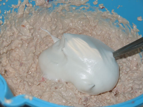 Желатин смешать с 3 ст.ложками кипятка (я брала быстрорастворимый желатин) и мешать до полного растворения.