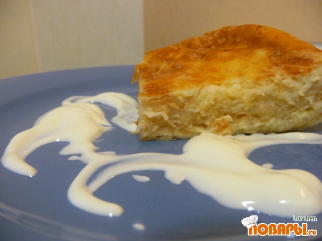 Снова смесь, затем лаваш, снова смесь... закончить сырно-творожно-яичной смесью.