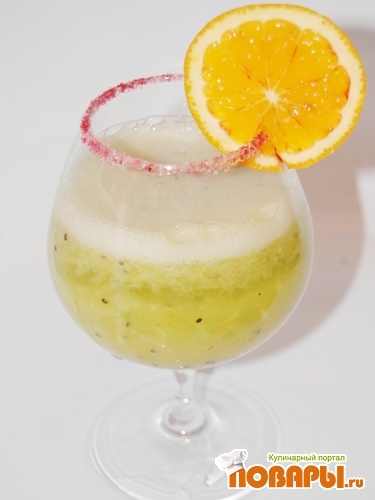 Ликер налейте в бокал для шампанского и долейте шампанским. На края бокала навесьте спирали апельсиновой цедры или кружок апельсина.