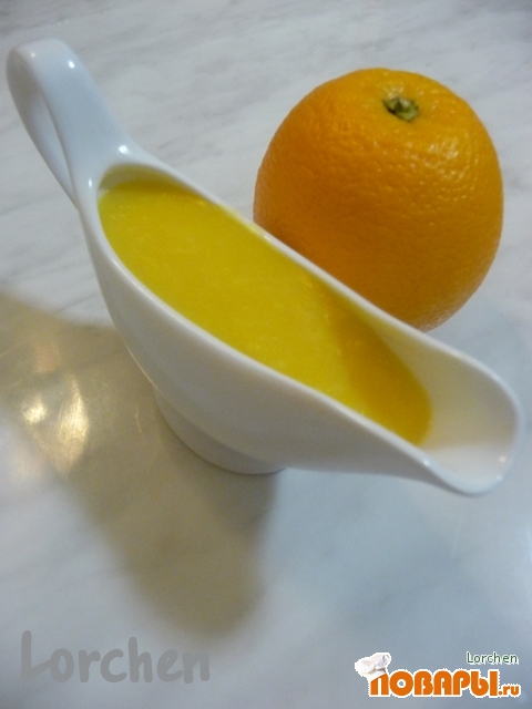Сливочное масло растопить, добавить свежевыжатый сок одного апельсина. Довести до кипения. Добавить осторожно муку, помешивая, довести до загустения.
