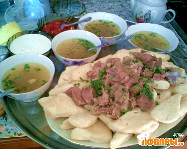 потом берем кусок мяса, откусываем. Очень вкусное блюдо всем советую попробовать.