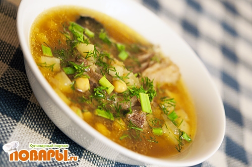 Мне очень понравился этот суп, необыкновенно сытный, вкусный и ароматный! В оригинале, суп Азербайджанский суп Пити готовиться в порционных глиняных горшках, а вместо картофеля - каштаны. Пришлось немного упростить рецепт, вы можете сделать еще проще, у кого нет баранины - заменить на не очень старую говядину на косточках. У меня небыло ребер, зато была свежая корейка, которую я порубил на куски, возможно такой вариант даже лучше ребер, от курдюка я отказался, так как корейка была с достаточно толстыми жировыми прослойками.