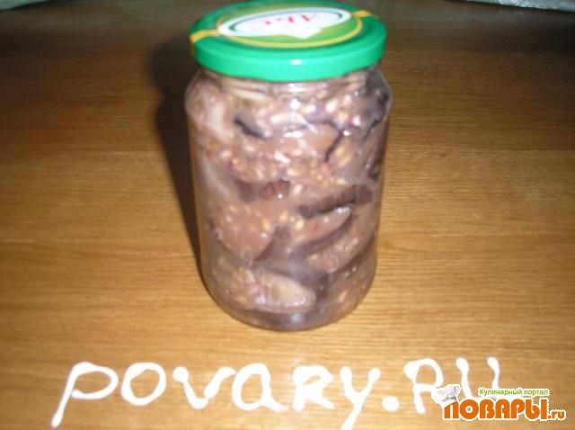 Залить маринадом баклажаны, перемешать, накрыть крышкой и оставить на сутки. В течении суток перемешивать несколько раз. Через сутки посолить и поперчить по вкусу, плотно сложить в простерилизованные банки и закрыть. Хранить в холодильнике.