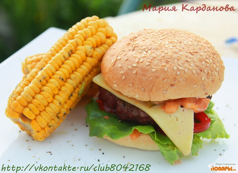 Бургер из говядины и кукурузка на гриле