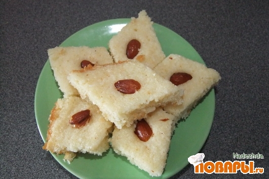 Рецепт получился сборный, из разных источников. Где-то он назывался Басбуса, где-то Наммура. Я в этом не очень понимаю. Так же встречала с яйцом подобный рецепт. Пробовала делать, кроме яичного запаха никаких изменений не почувствовала. Десерт получается очень вкусный и нежный. Если оставить на столе подветриться, то будет плотнее. Орешки сверух можно положить любые на Ваш вкус, я в следующий раз хочу попробовать с фисташками. Готовится это блюдо очень быстро и просто.
