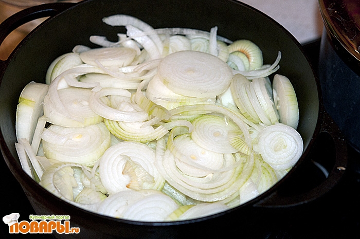 И так, для начала подготовим все ингредиенты, нам понадобиться много лука, почти килограмм, все зависит от размера вашего казана, в моем случае это 4л казан с диаметром 24 см, цель - максимально наполнить казан ингредиентами, так что бы даже получилось с небольшой горкой.