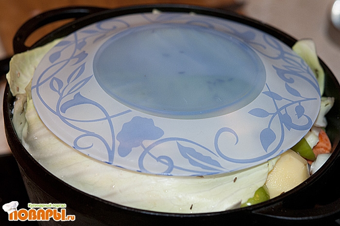 Включаем на средний огонь, и ждем минут 15 пока все закипит, как закипит - убавим огонь до слабого. Готовится будет минут 70-90, зависит от качества мяса.