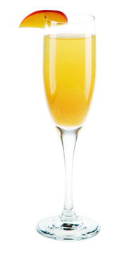 Налей персиковое пюре 30 мл и сухое игристое вино 120 мл