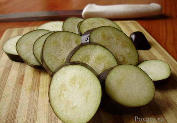 Сначала поставим мы в жаркую печку, нарезав кружочком, тугой баклажан. Сдобрим его солью и маслом оливок, забудем на время (минут этак на 30), а там поглядим.