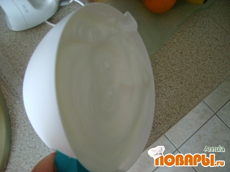 Достать белки, начать взбивать сначала только белки на небольшой скорости, когда чуть поднимется пена, добавить оставшийся сахар и по мере увеличения объема массы, увеличивать скорость взбивания. Взбивать белки до тех пор, пока при наклоне посуды они не будут оставаться на месте (не стекать по стенкам)