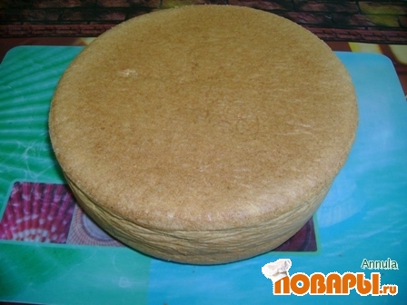 Оставить корж остудиться на несколько часов, на ночь убрать в холодильник (завернуть не плотно в пакет). На след. день промазать любым кремом, собрать торт.