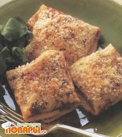 Нагреть духовку до 200°С. Выложить блинчики на смазанный жиром противень и печь в середине духовки 25-30 минут, пока они не приобретут золотисто-коричневый цвет и начинка насквозь не прогреется. Подавать, украсив водяным крессом и зеленым салатом.