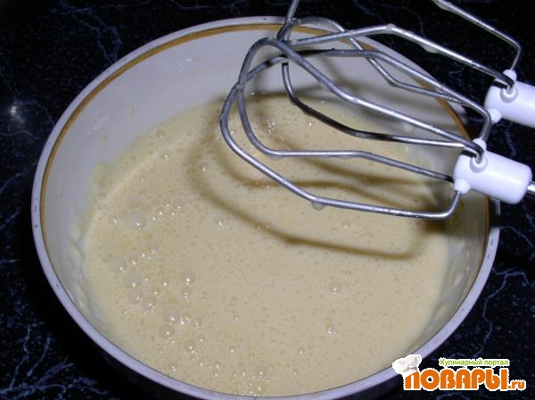 Блинчики: растопить слив. масло и остудить. В миске смешать муку, разрыхлитель и сахар. Добавить яйца, мед и молоко, миксером вымесить до однородной массы и влить растопленное слив.масло.
