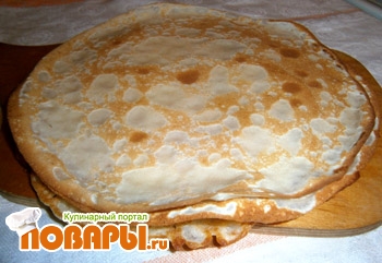 Отдельно взбить яйца, также добавить их к тесту и смешать. В завершение влить растительное масло и снова хорошенько перемешать. Выпекать блинчики традиционным способом - на очень разогретой сковороде до румяности.