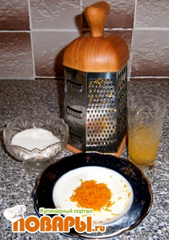 В сотейнике следует растопить масло, постепенно добавляя сахар. Важно непрерывно и тщательно помешивать, чтобы соус не подгорел. Вливаем в смесь сок и добавляем цедру. Продолжаем готовить, помешивая, пока соус не получит более густую консистенцию.