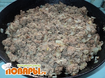 Для первой начинки обжариваем лук и добавляем к нему измельченную печень. Солим, перчим. Даем остыть.