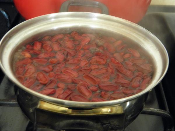 Сначала варим мясной бульон, до полной готовности мяса. Фасоль, обычно готовлю с вечера, замачиваю на ночь в холодной воде, потом отвариваю до готовности в отдельной кастрюльке.