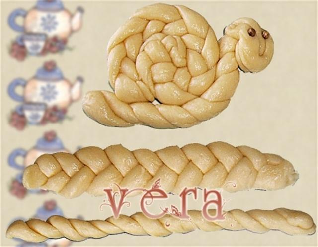 Сплести из теста косичку, тонкий жгут, скатать шарик- голова.