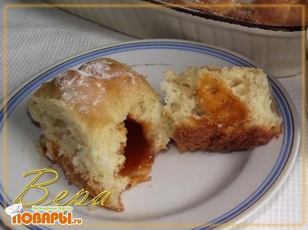 Разделить тесто на 15 частей, раскатать. Выложить на каждую булочку 1 ст. ложку повидла.