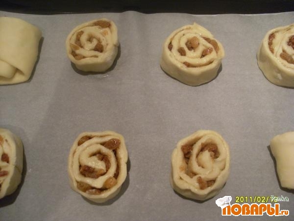 Свернуть тесто рулетом и разрезать на кусочки шириной примерно 2 см.