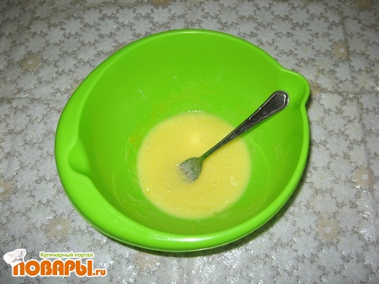 Отделим желтки от белков, разотрём их с сахаром. Добавим к полученной смеси яйцо и перемешаем.