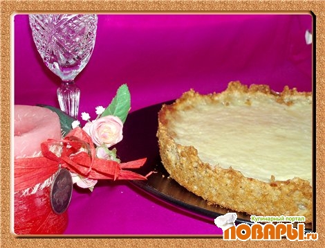 -Выложить пирог на дно металлической разъемной формы или красивой керамической формы (в которой вы потом и подадите пирог).