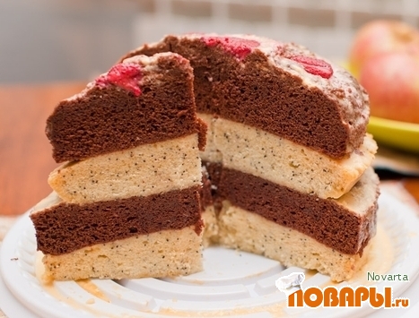 Соместить белые и тёмные коржи была моя фантазия. А вообще, можно печь просто шоколадные или белые кексы, пропитывать вареньем или сметанным, лимонным, каким угодно кремом - очень вкусно! :)